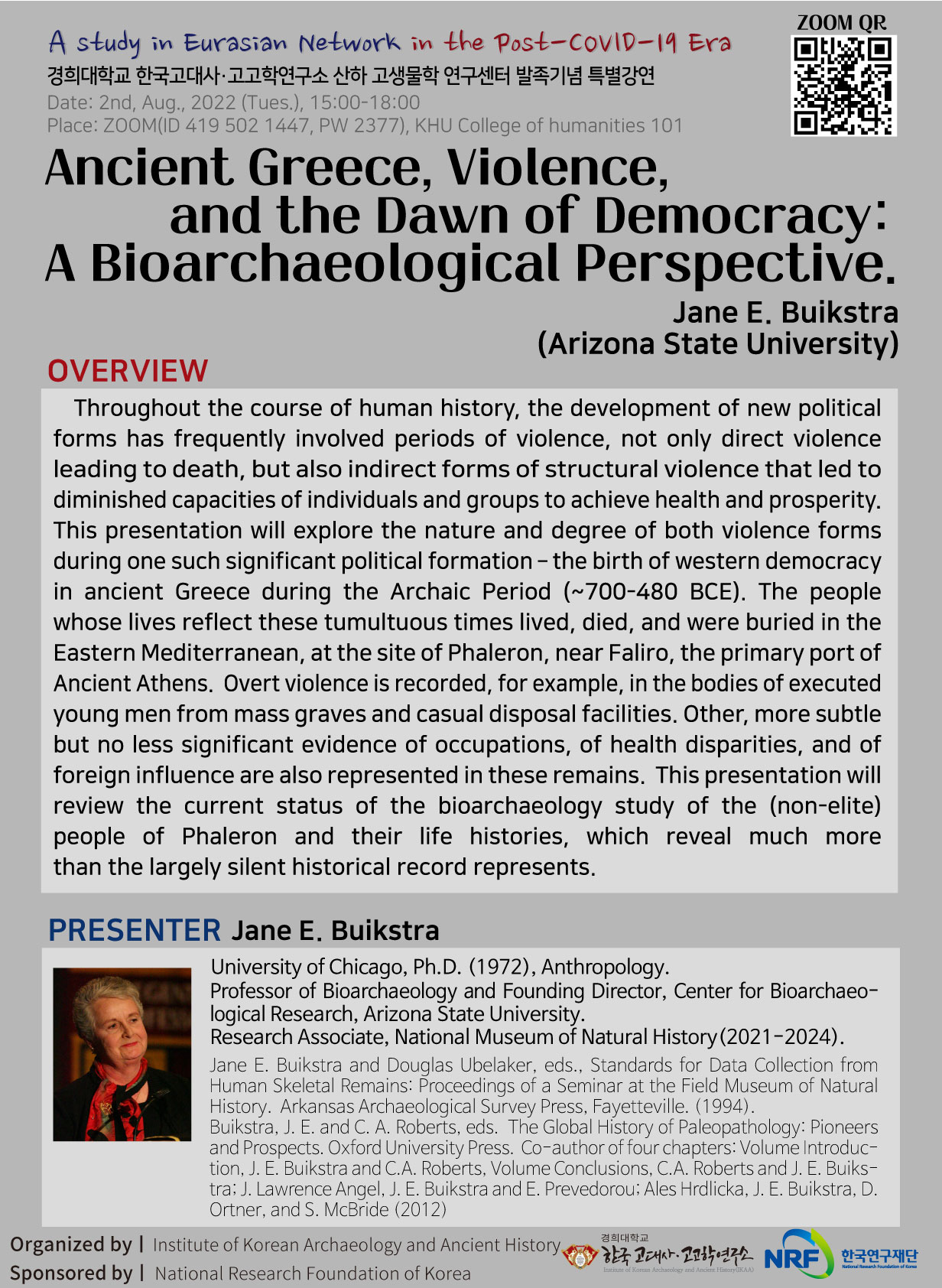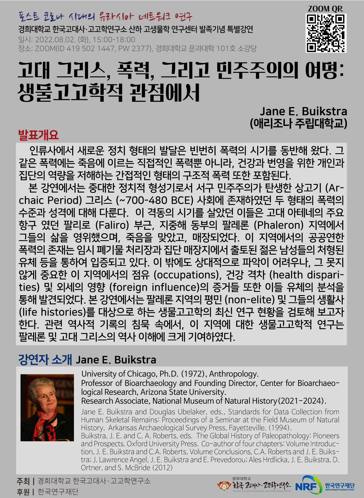경희대학교 한국고대사고고학연구소 산하 고생물학 연구센터 발족기념 특별강연 - 고대 그리스, 폭력, 그리고 민주주의의 여명: 생물고고학적 관점에서