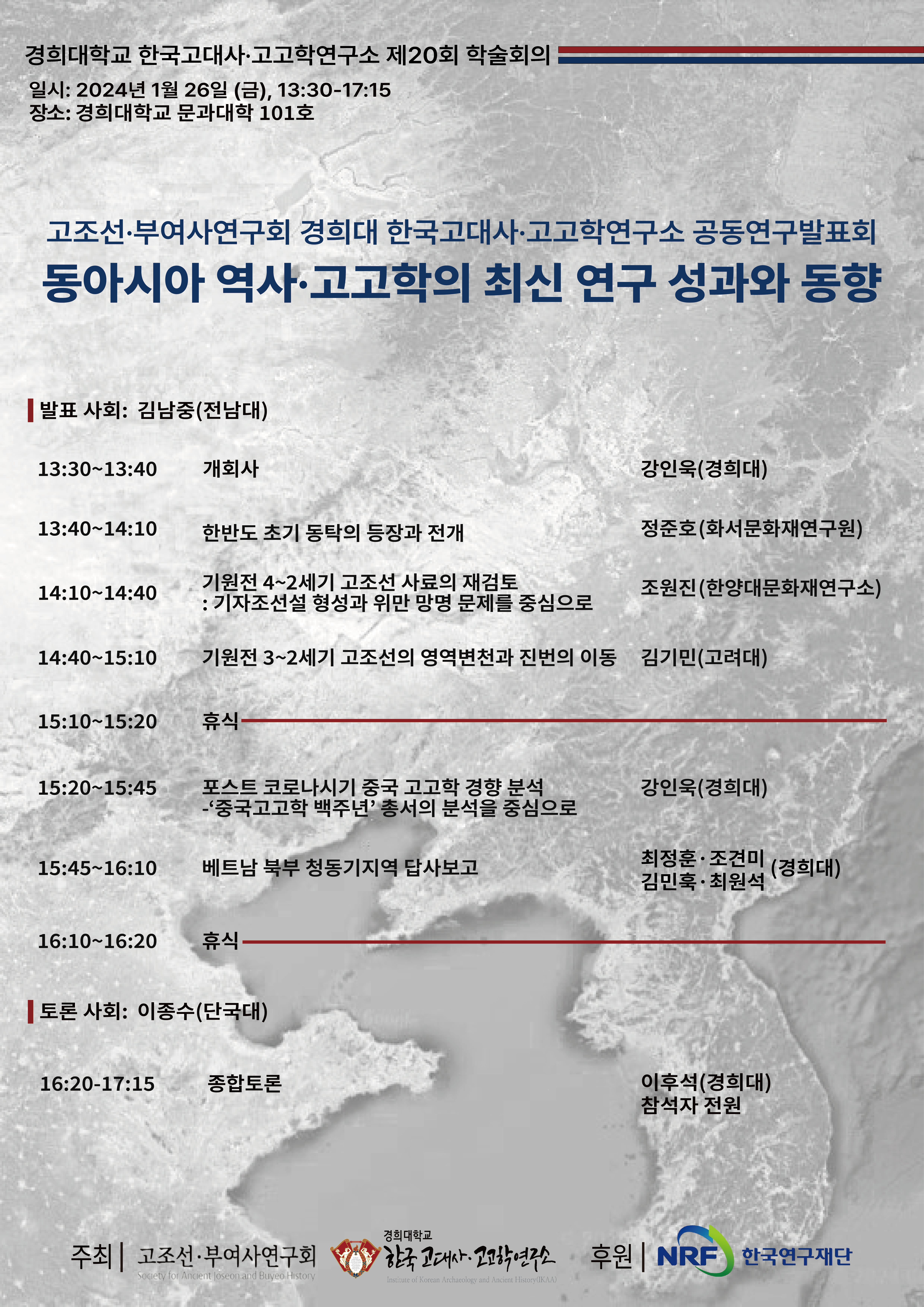 제20회 경희대학교 한국고대사•고고학연구소 및 한국고대사학회 고조선•부여사연구회 학술회의 개최 안내