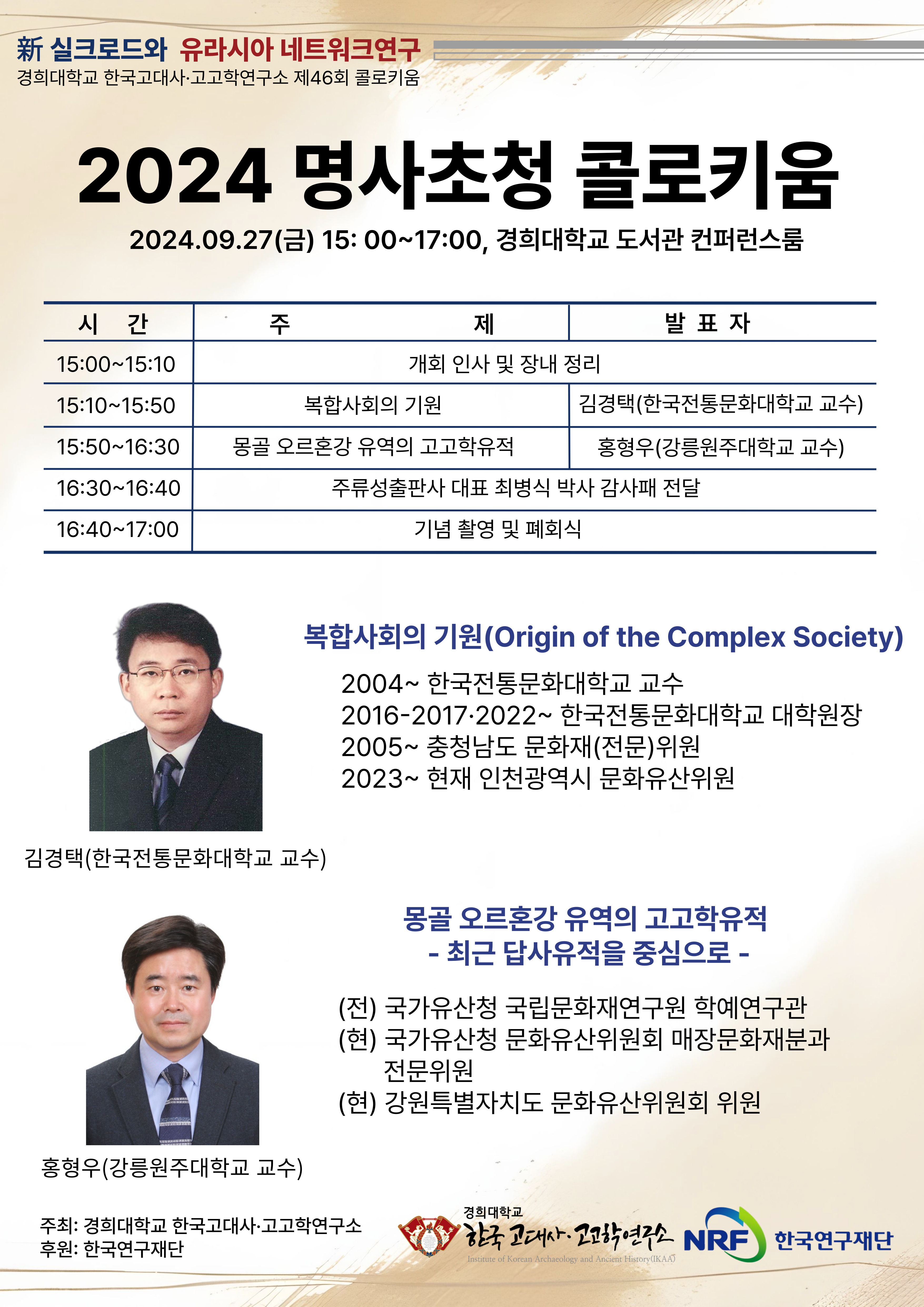 경희대학교 한국고대사·고고학연구소 2024 명사초청 콜로키움을 안내드립니다.