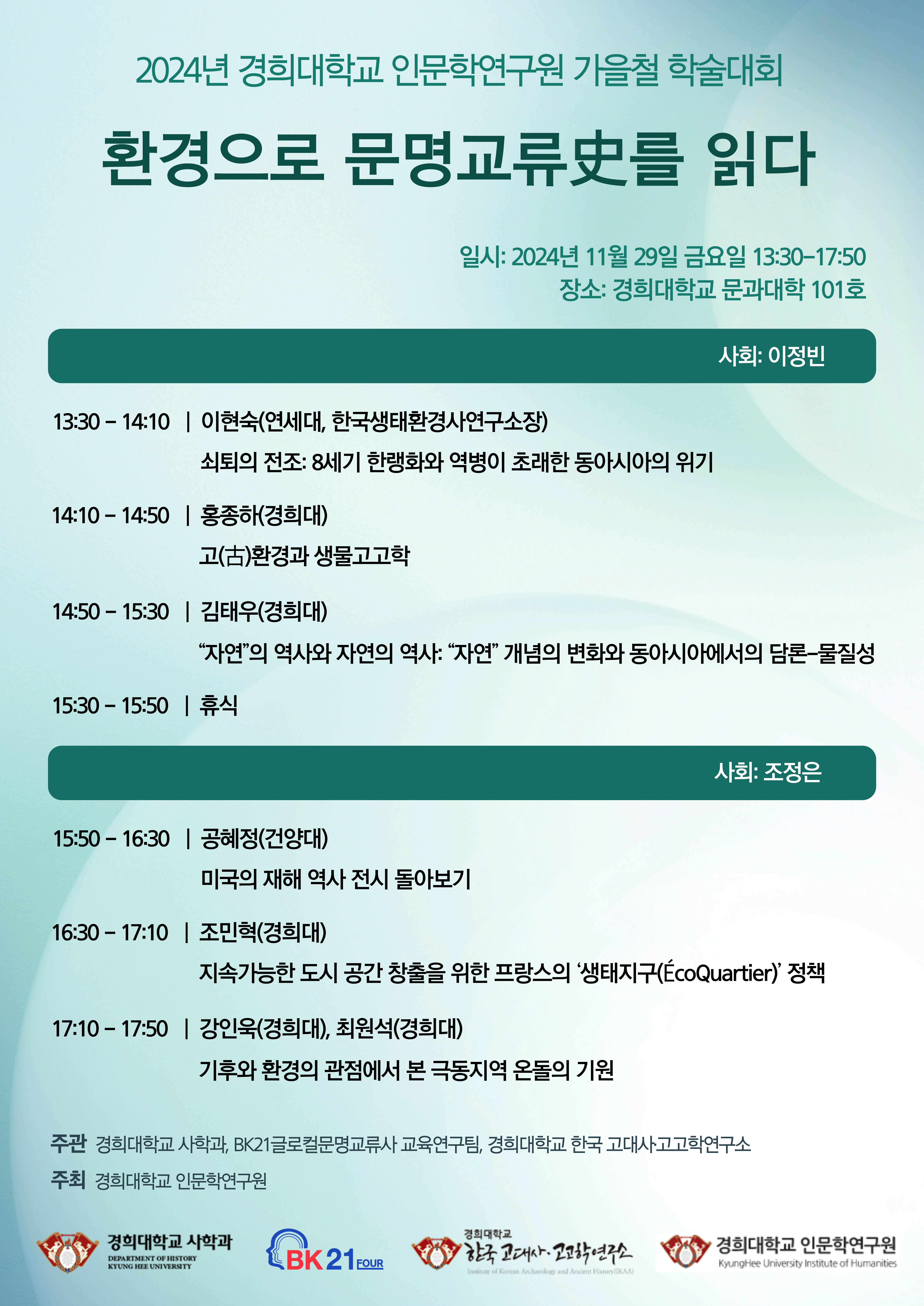 2024년 경희대학교 인문학연구원 가을철 학술대회 "환경으로 문명교류史를 읽다"