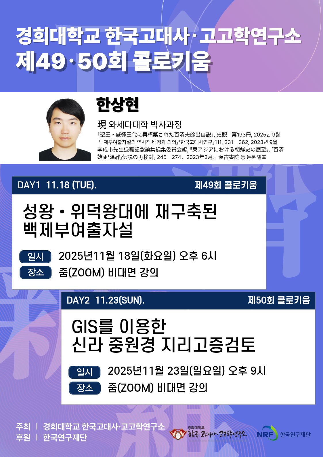 경희대학교 한국고대사·고고학연구소의 제49·50회 콜로키움 안내 드립니다.
