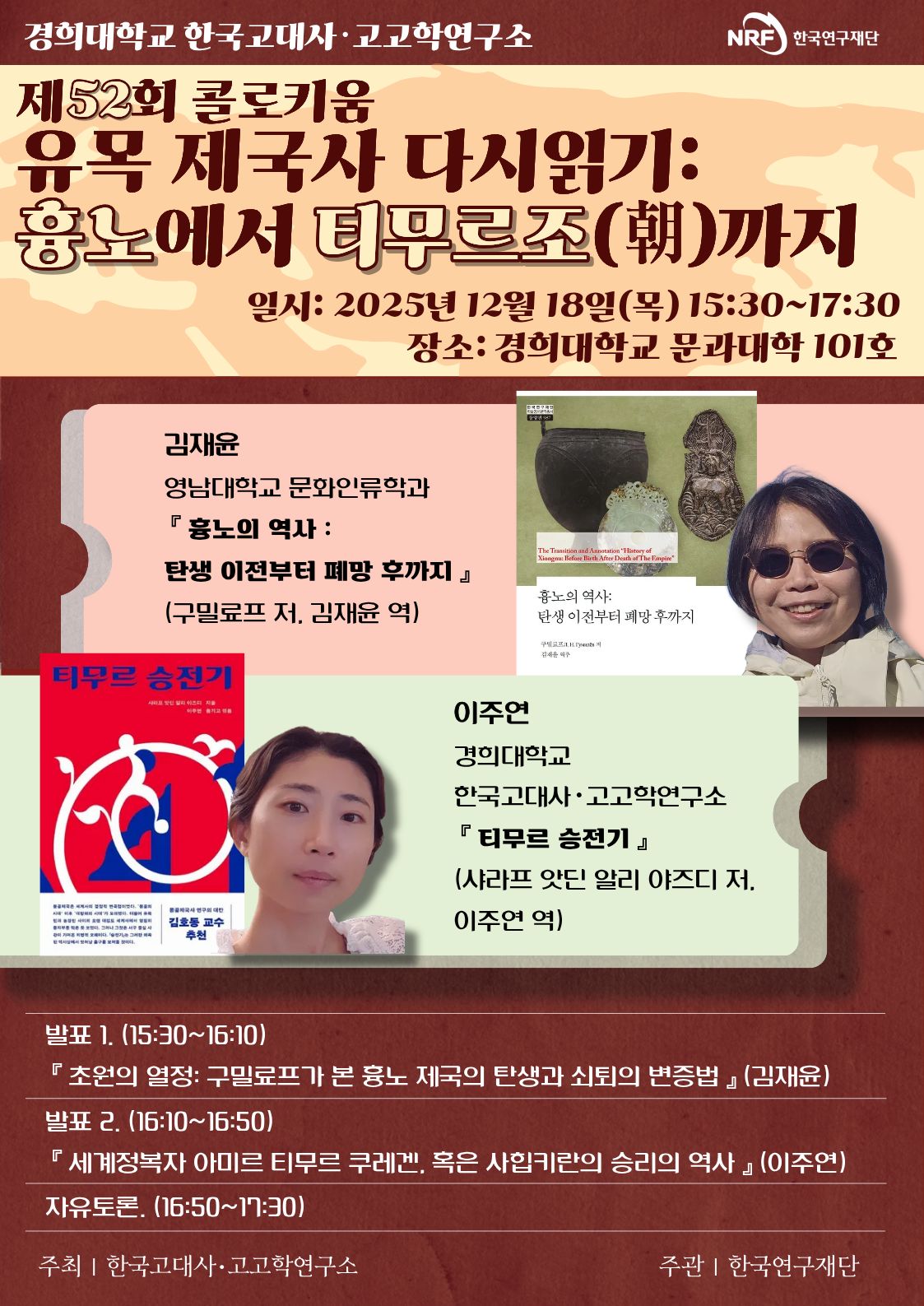 경희대학교 한국고대사·고고학연구소 제52회 콜로키움 : 유목 제국사 다시읽기: 흉노에서 티무르조(朝)까지