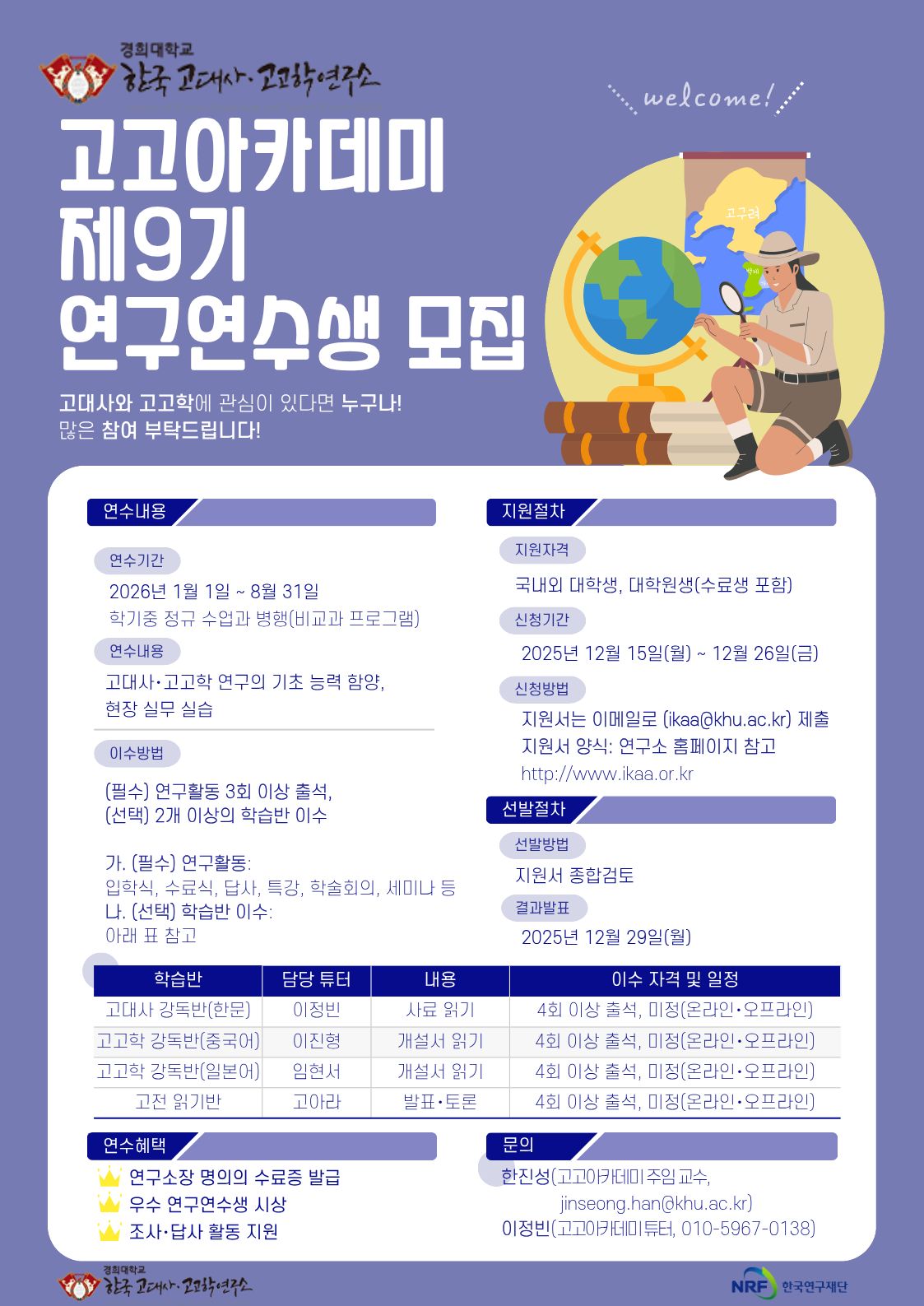 2025년을 맞이하여 고대사와 고고학에 관심있는 대학생·대학원생을 대상으로 제9기 고고아카데미 연수생을 모집합니다.