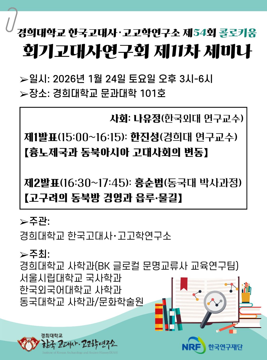 경희대학교 한국고대사·고고학연구소 제54회 콜로키움 : 회기고대사연구회 제11차 세미나