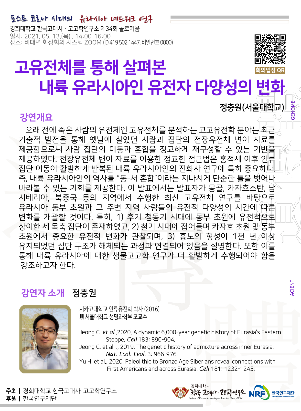 경희대학교 한국고대사 · 고고학연구소 제34회 콜로키움: 고유전체를 통해 살펴본 내륙 유라시아인 유전자 다양성의 변화