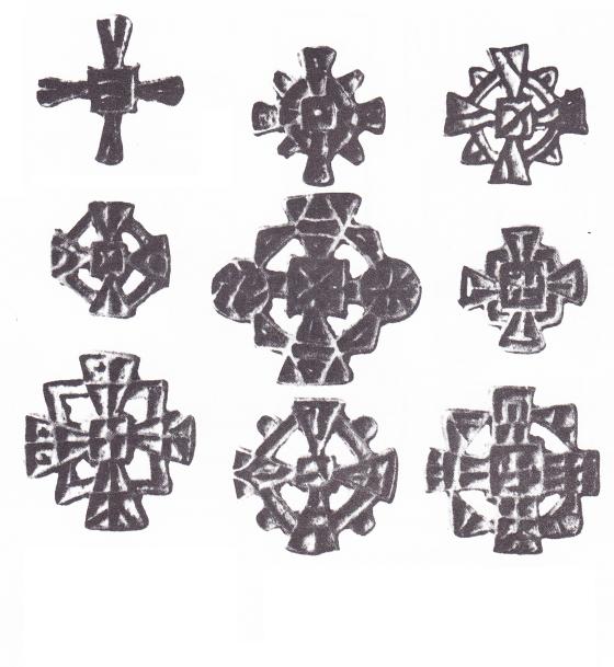 그림설명 : 아브리코스 절터의 토제 십자가와 발굴평면도